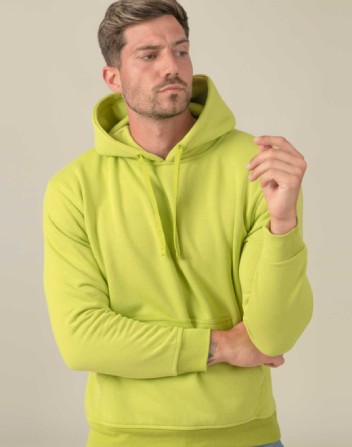 Чоловічий реглан з капюшоном щільність тканини 290 г/м2 35% бавовна, 65% поліестер нашивні кишені спереду еластичні широкі манжети на рукавах і поясі шнурок капюшону в колір реглана